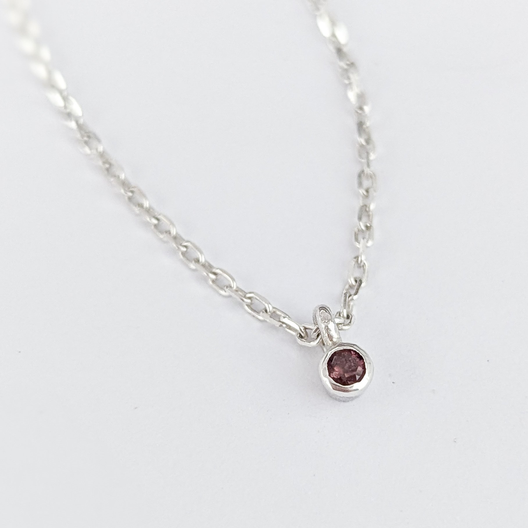 This bracelet was originally part of my Welded collection, but is now available here as a bracelet with a clasp. The dainty Tide chain creates a very subtle sparkle when it catches the light, paired with a teeny 3mm Pink Tourmaline charm. Only 4 available, please enter your bracelet chain length once you click Add to Cart. Made from 100% recycled sterling silver.