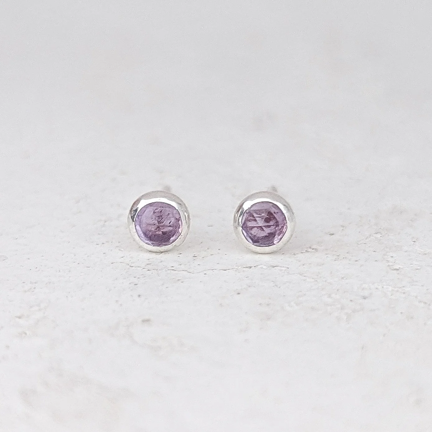 The Treasure studs are perfect for everyday wear, set with a 4mm Amethyst stone, in a beautiful lilac colour. Amethyst is the stone for strength + protection.