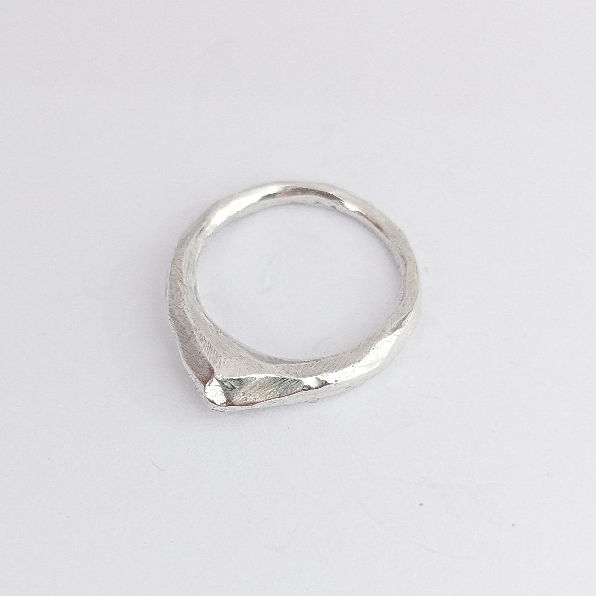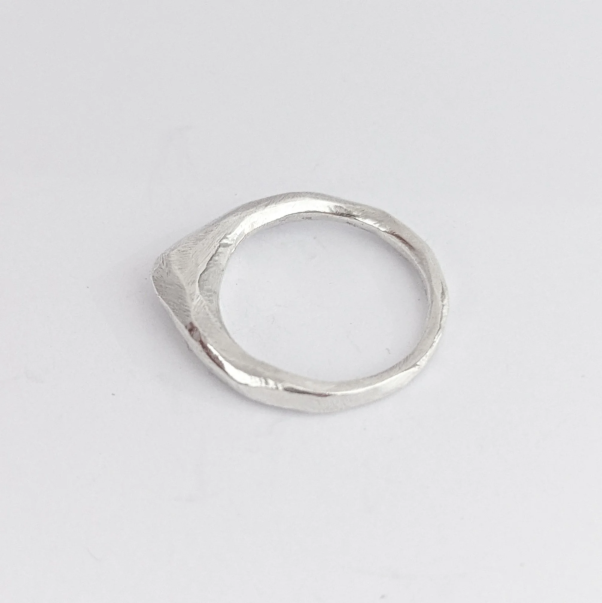This ring is a sample piece and is listed at a special reduced price. Inspired by rugged mountain forms, with organic textures and markings and a slightly more matte/worn finish. Handcrafted from scratch in the studio from 100% recycled sterling silver..