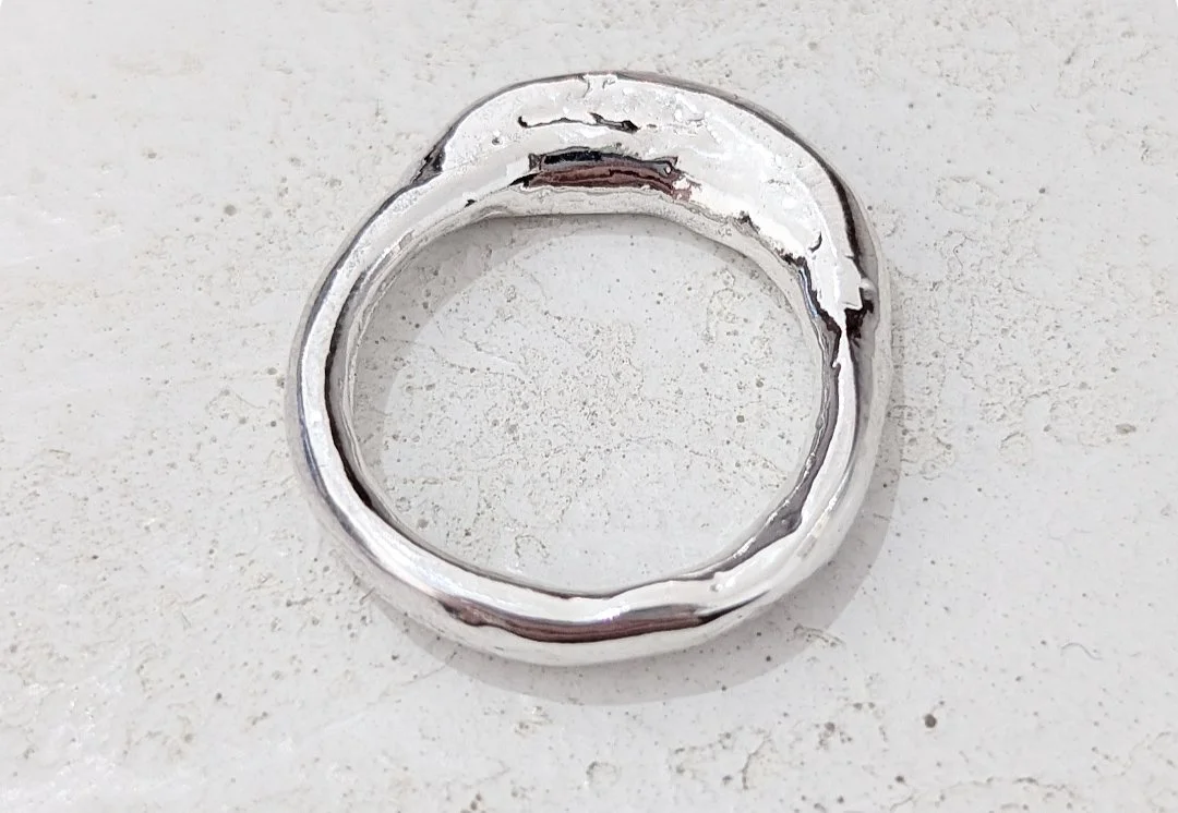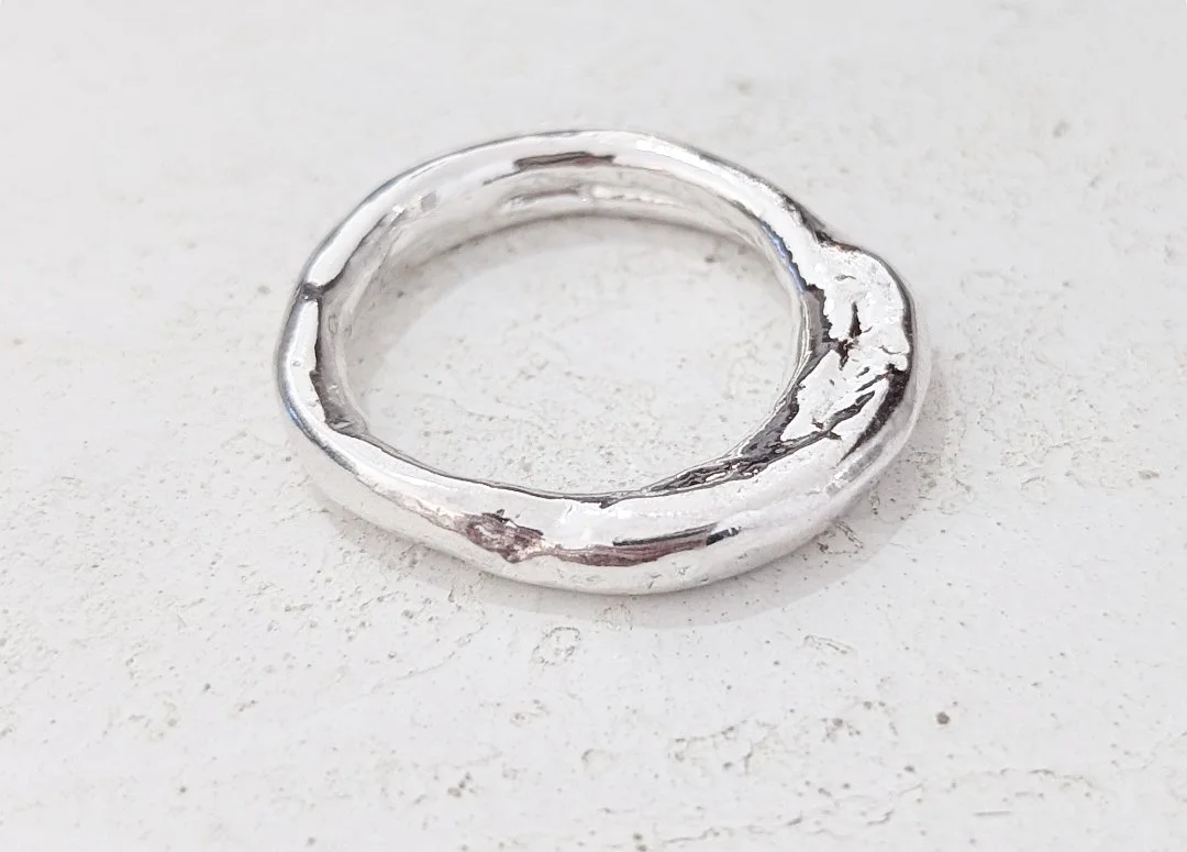The Odyssey collection has been inspired by rugged coastlines, wild waters and rocky mountains which are reflected in the unique textures of each piece. Handcrafted from scratch in the studio from 100% recycled sterling silver, each ring is perfectly imperfect, completely unique and one of a kind. Please note, due to the weight of this piece, it will be sent for hallmarking and will be ready to post at the end of February.
