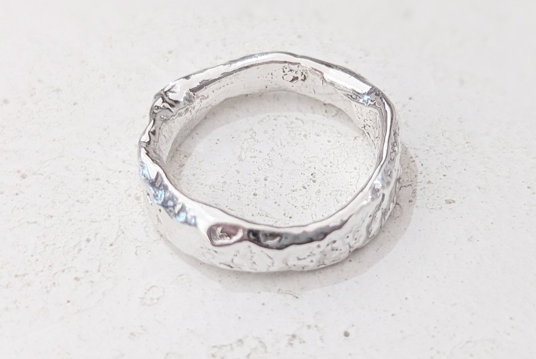 The Odyssey collection has been inspired by rugged coastlines, wild waters and rocky mountains which are reflected in the unique textures of each piece. Handcrafted from scratch in the studio from 100% recycled sterling silver, each ring is perfectly imperfect, completely unique and one of a kind.