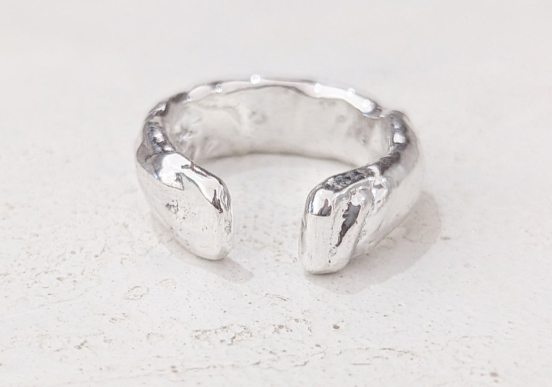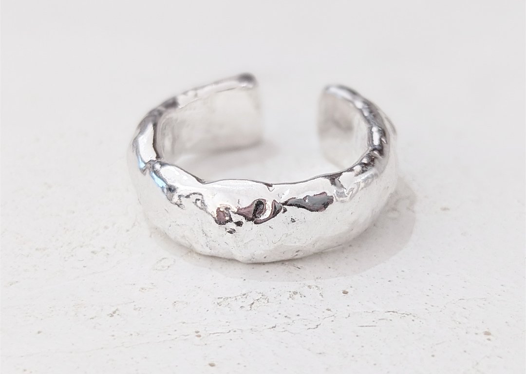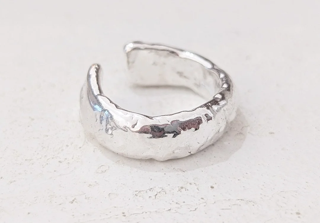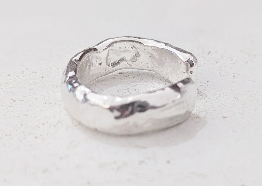 The Odyssey collection has been inspired by rugged coastlines, wild waters and rocky mountains which are reflected in the unique textures of each piece. Handcrafted from scratch in the studio from 100% recycled sterling silver, each ring is perfectly imperfect, completely unique and one of a kind. Please note, due to it’s weight, this ring will be sent for hallmarking and will be ready to post at the end of February.