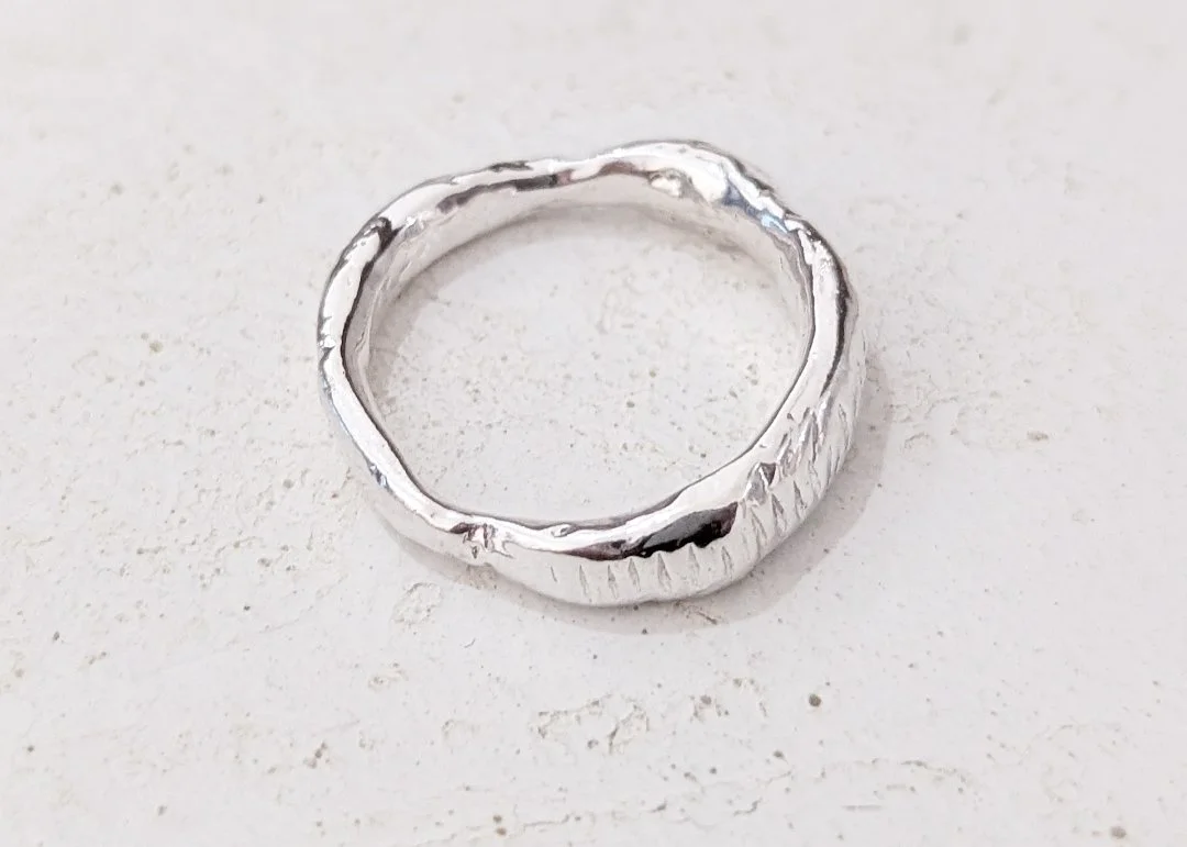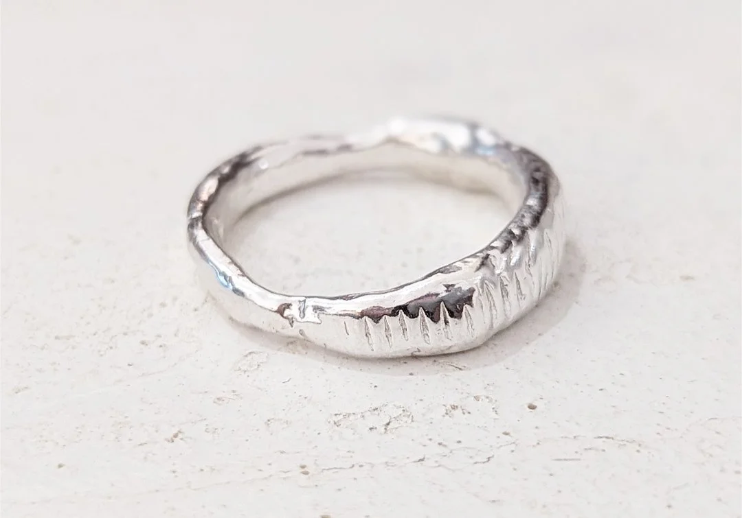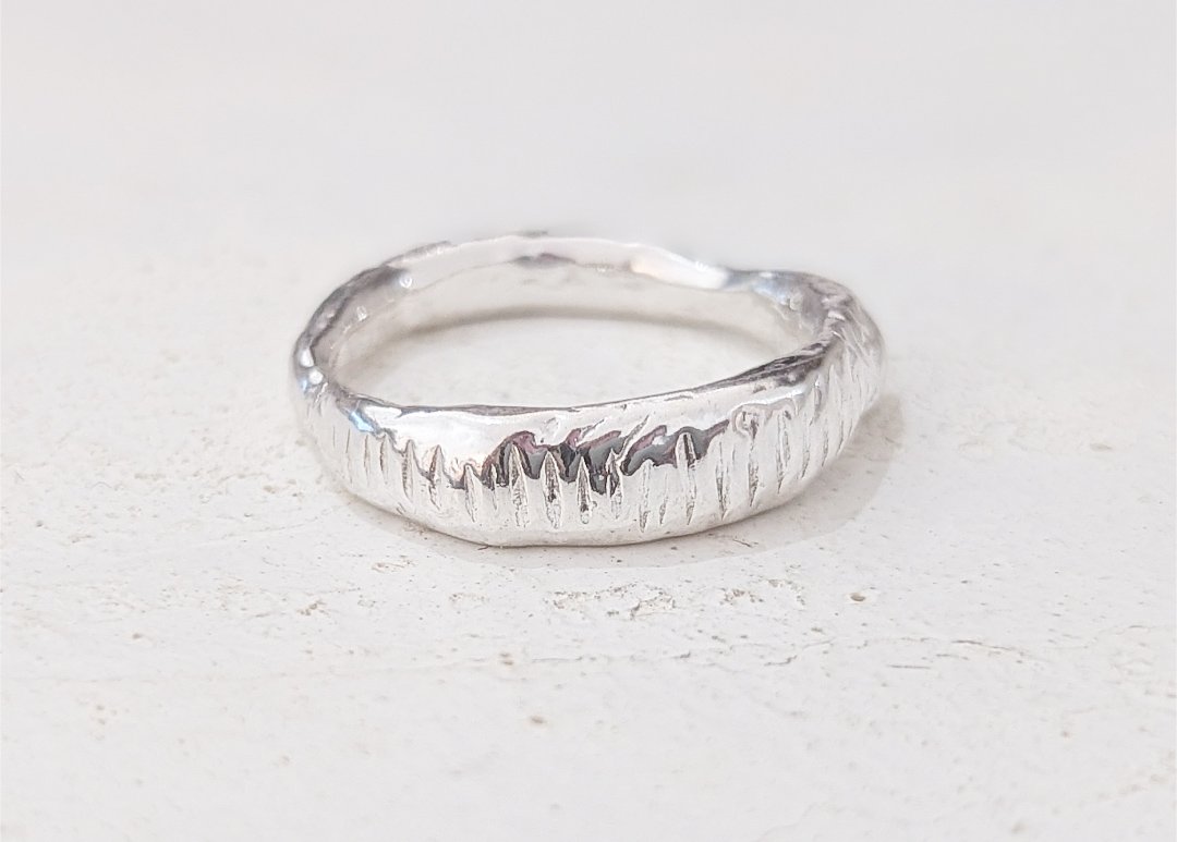 The Odyssey collection has been inspired by rugged coastlines, wild waters and rocky mountains which are reflected in the unique textures of each piece. Handcrafted from scratch in the studio from 100% recycled sterling silver, each ring is perfectly imperfect, completely unique and one of a kind.